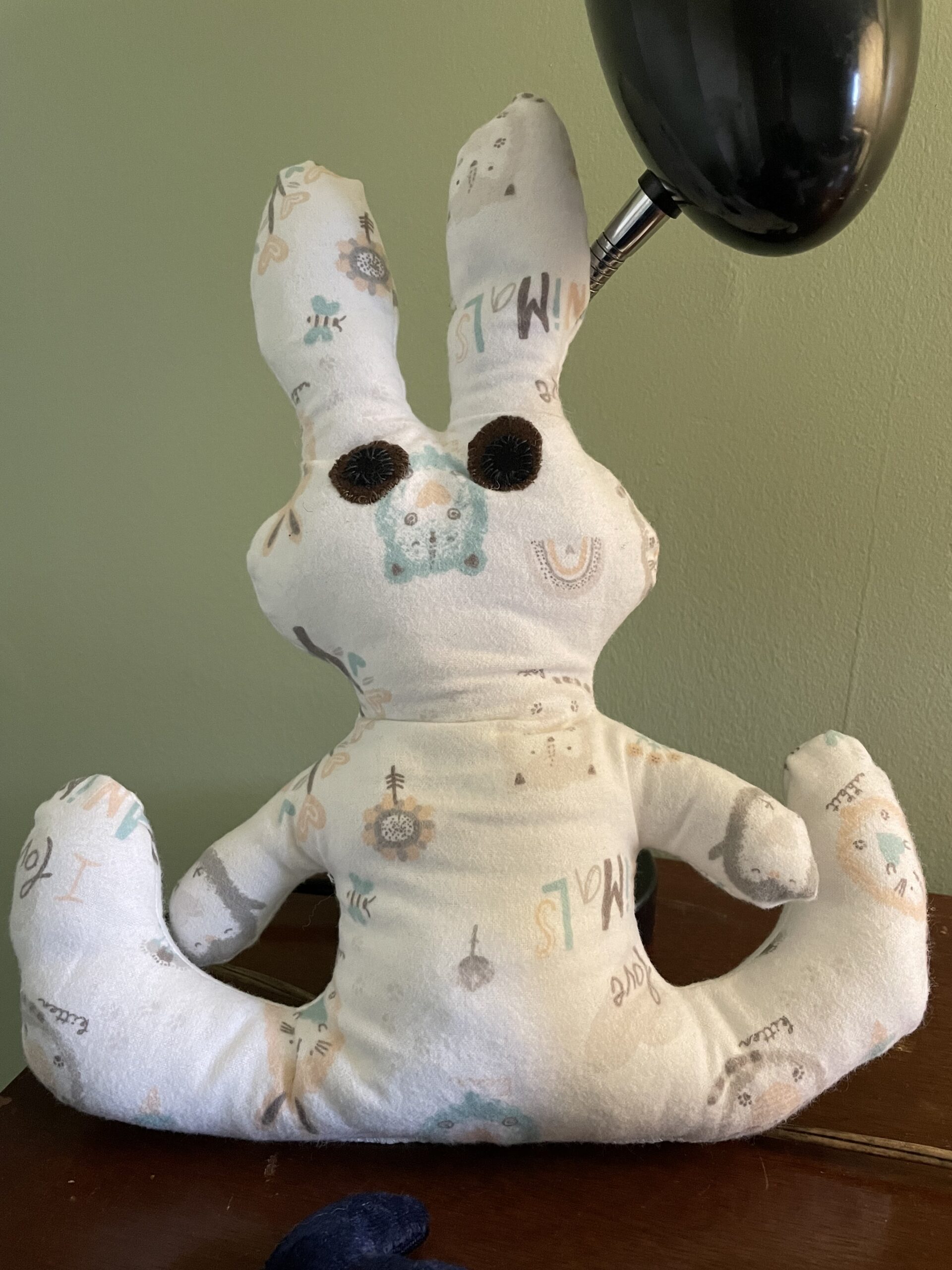 - I made a stuffed animal for our son – a bunny, to honor the year of the Rabbit in which he would be born. Again, making something with my hands gave my mind something to focus on, and getting help from a friend to do it brought in my community support. Plus, I got to laugh at my own lack of skills, and cuddle something soft at the end of the project.